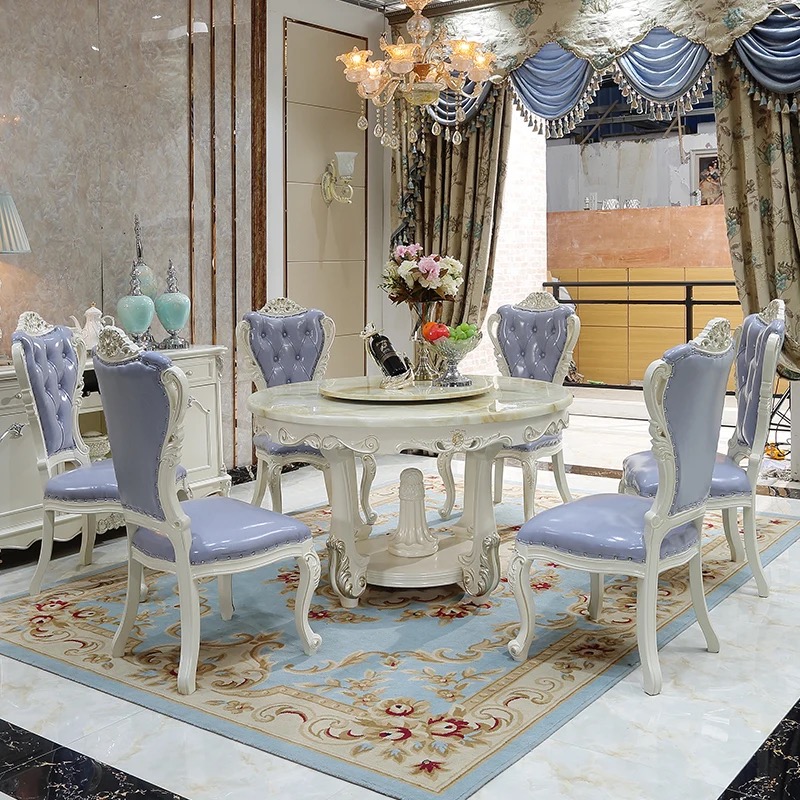 Victorian furniture is characterized by ornate, intricate designs, often featuring rich woodwork, elegant carvings, and luxurious finishes. A round dining table in the Victorian style typically has the following features: