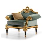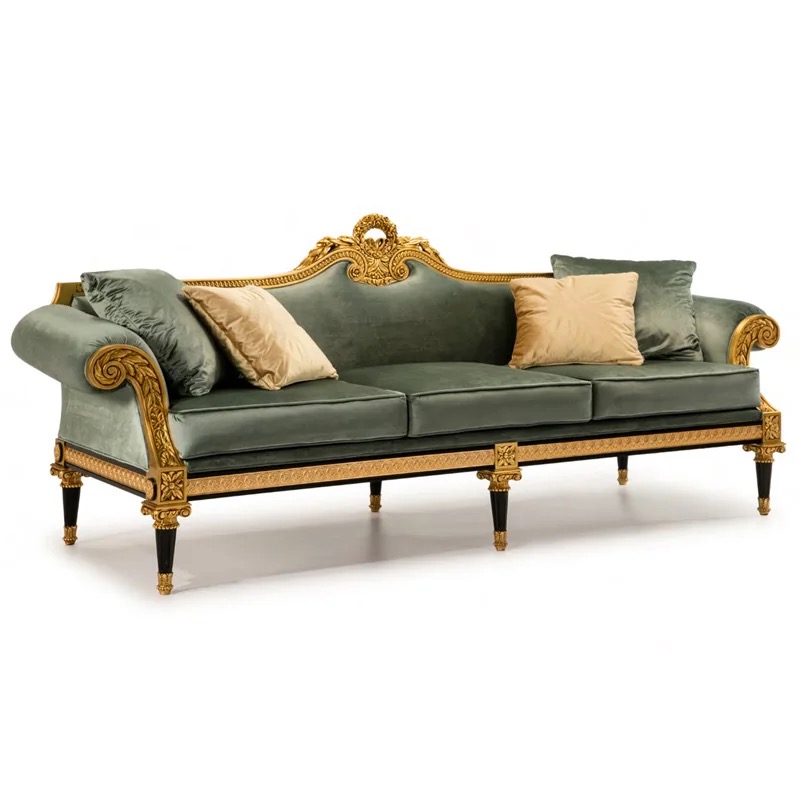 - The cushions can be upholstered in fabric, leather, or velvet in colors that complement the wood and gold accents—popular choices are neutral tones (like beige, gray, or white) or even rich jewel tones (like deep navy, emerald green, or burgundy) to elevate the opulence.
