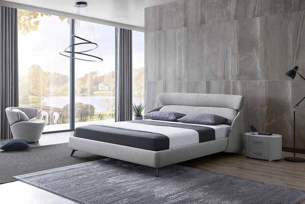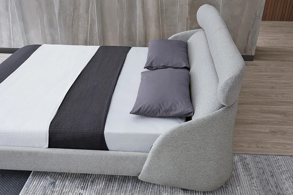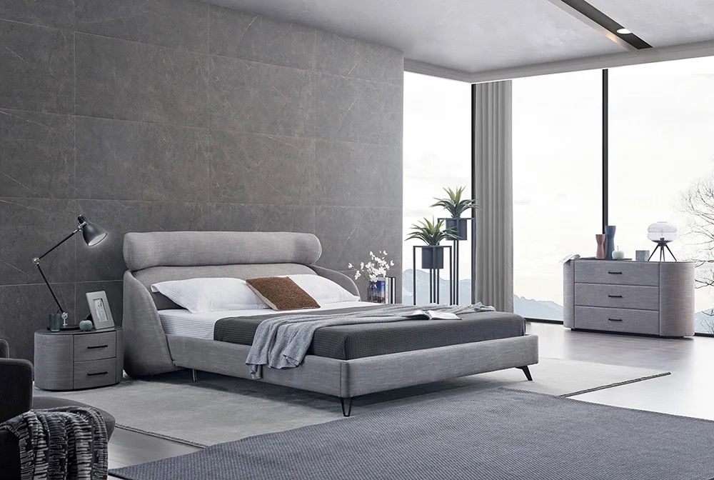 A wooden leather modern bed strikes a balance between rustic charm and sleek sophistication, making it a great focal point in any bedroom.